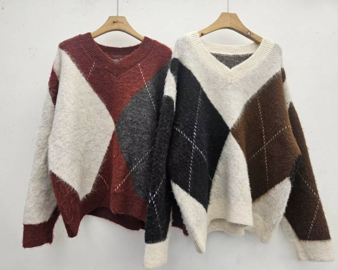 ❥ 大 菱 格 V 領 上 衣 。