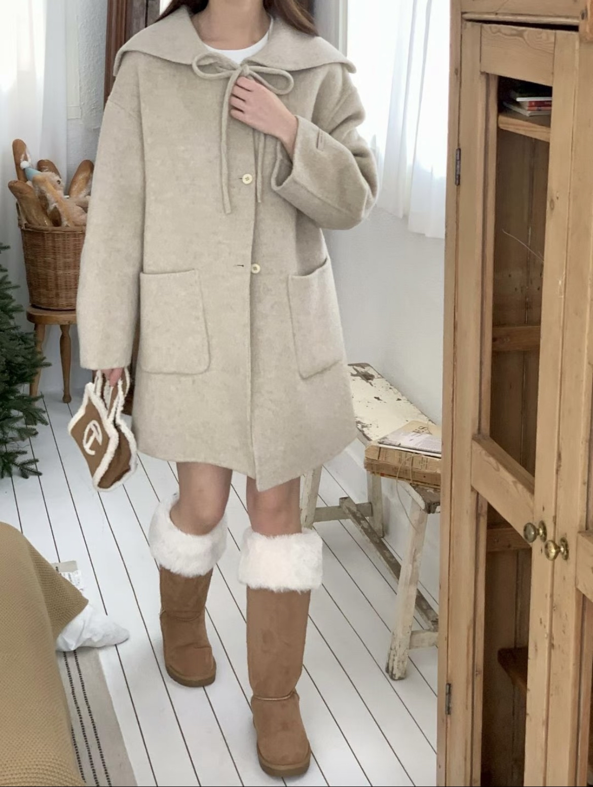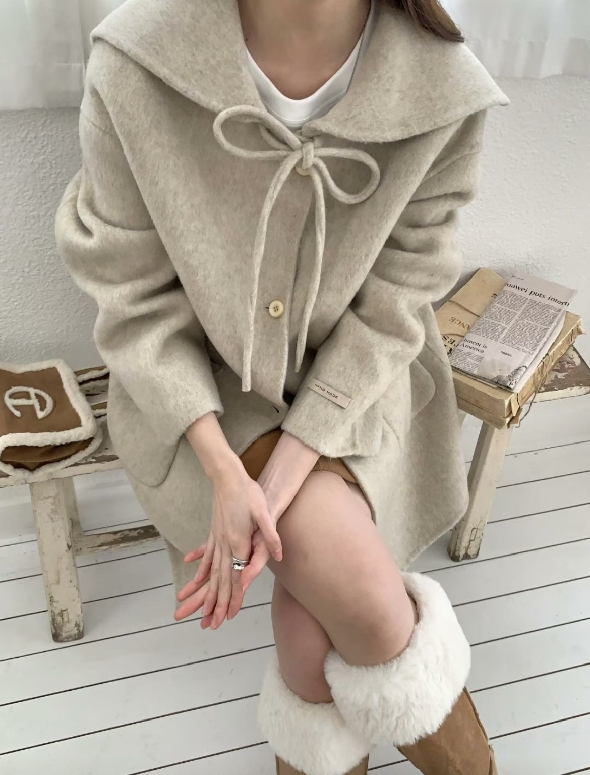 ♡ 手 工 100% 羊 毛 披 風 外 套 。