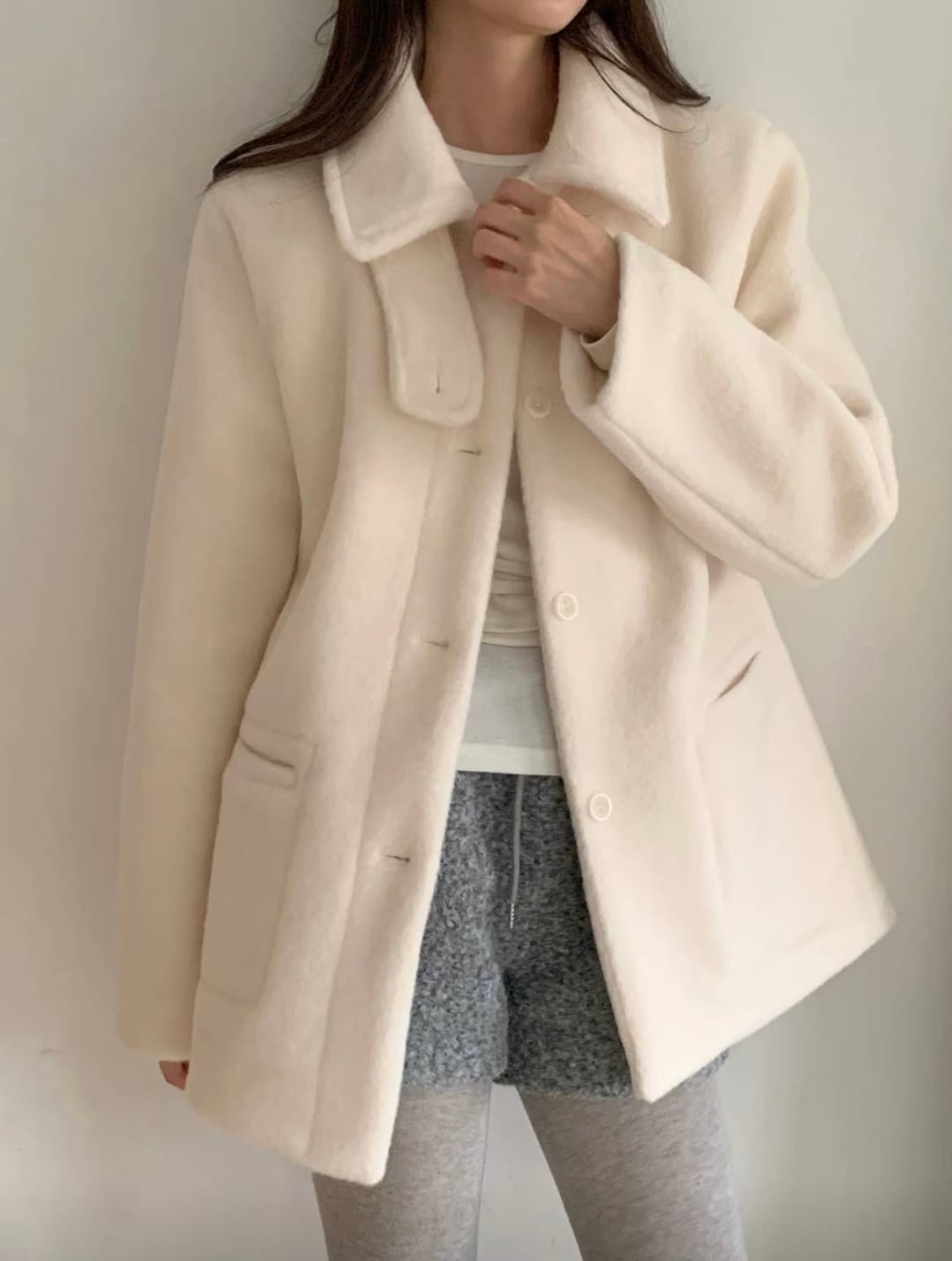 ♡ 舒適口袋中長外套。
