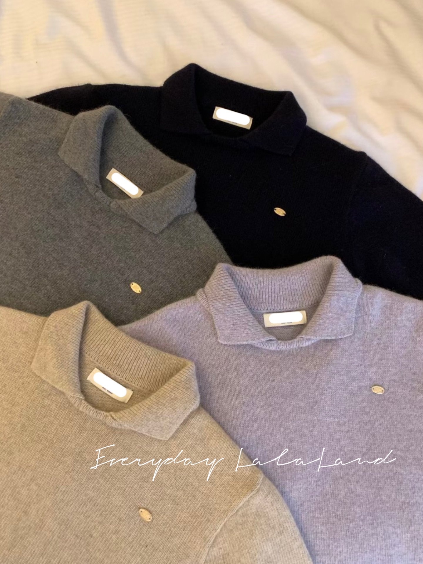 ❥ 小 翻 領 浣 熊 針 織 上 衣 。