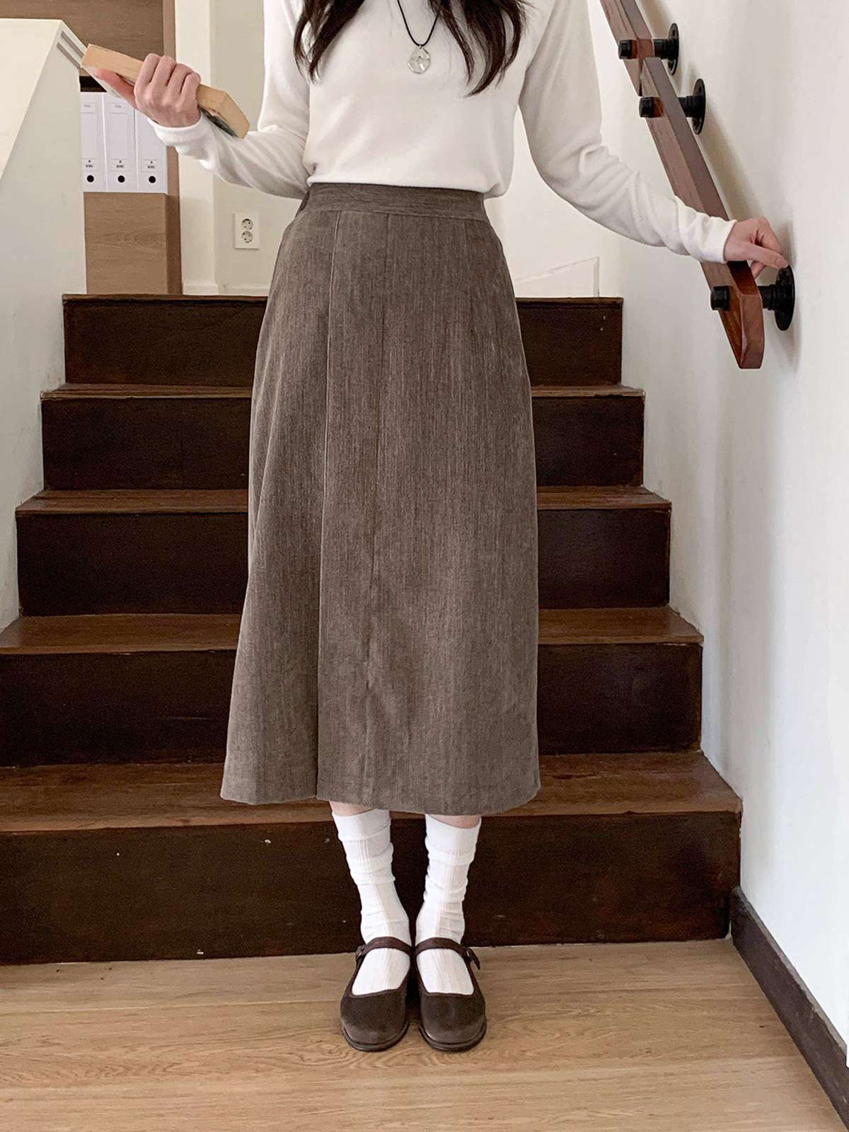 ❥ 燈 芯 絨 側 開 衩 長 裙 。