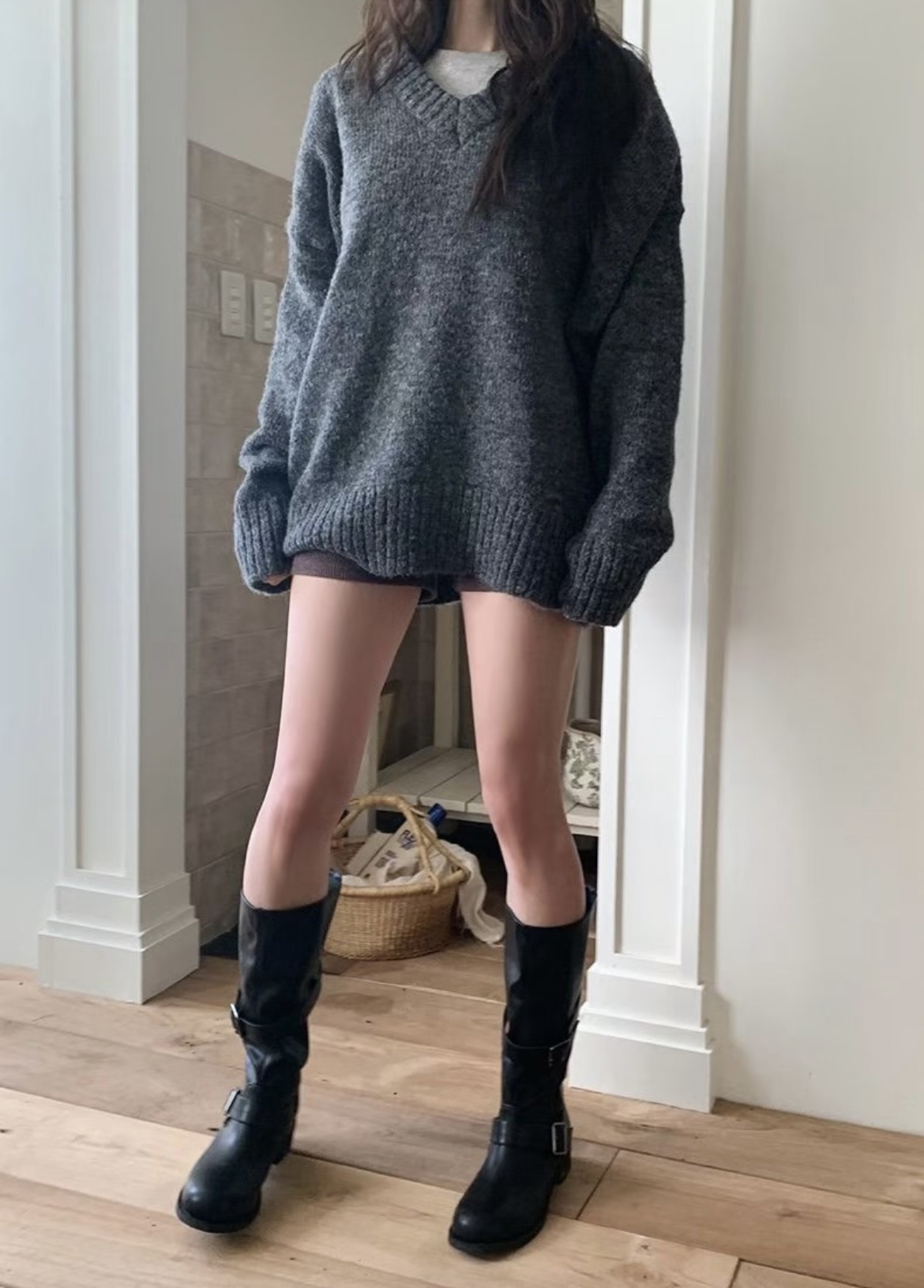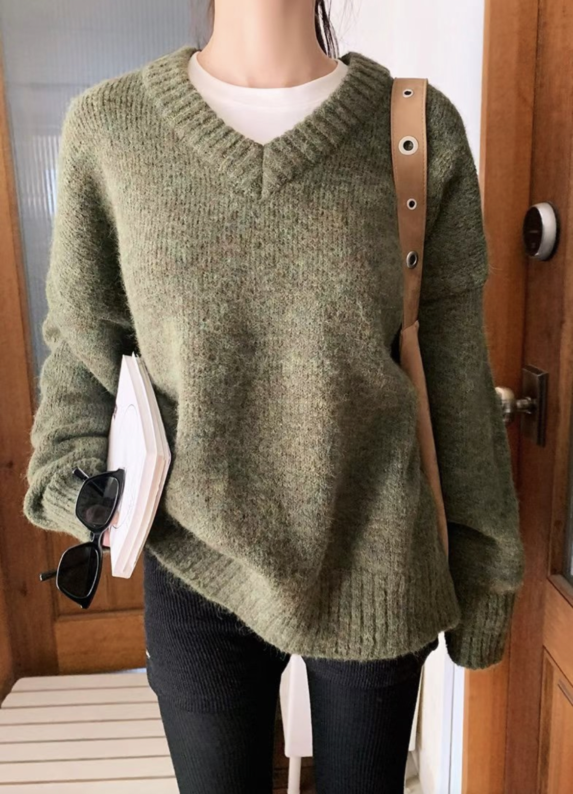 ❥ V 領 長 款 毛 衣 。